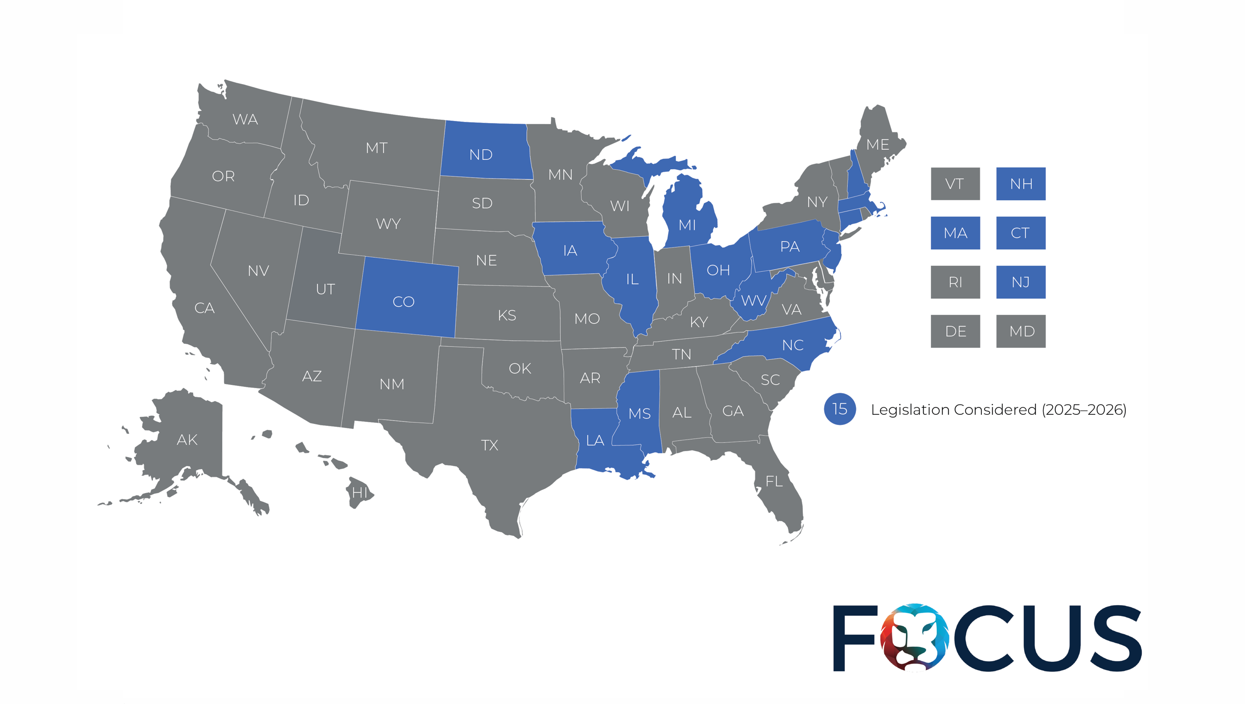 GLP-1s like Ozempic, Wegovy and Zepbound are being hailed as miracle drugs for weight loss. With prices averaging $1,000 a month, driven in part by packaging and supply costs, states are weighing how to handle Medicaid coverage. Some have restricted Medicaid access while others consider expansion as demand continues to grow. | | | | | | | | | | | | | | FOCUS: Trusted Experts in State Government Affairs | | | | Since 2003, FOCUS has provided tailored, results-driven government affairs solutions for our clients. We offer best-in-class legislative and regulatory tracking to keep you informed and ahead of the curve. Our full-service platform delivers real-time, comprehensive coverage across all 50 states, D.C., Congress, local jurisdictions, and key state and federal agencies. With filtered databases, customized alerts, expert analysis, an intuitive dashboard, and outstanding support, our team equips you with the tools and intelligence needed to navigate policy developments with confidence and clarity. | | | | | | |